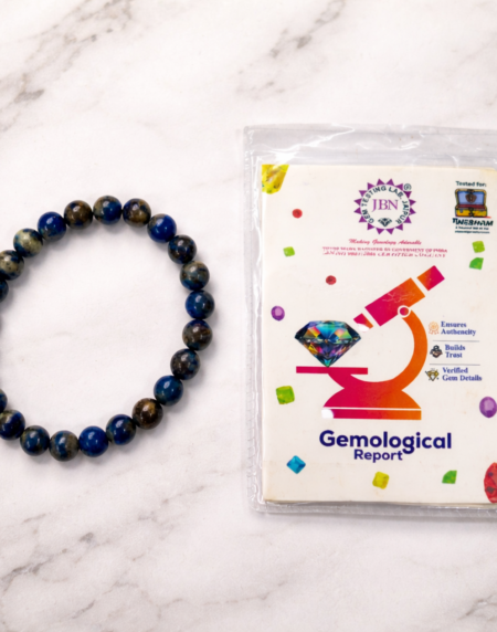 Enhance your wisdom, confidence, and inner peace with the Ganesham Natural Lapis Lazuli Bracelet. Crafted from premium-quality natural blue Lajwart beads and certified by JBN Gem Testing Lab, this elegant bracelet combines timeless beauty with powerful astrological and healing benefits. Suitable for both men and women.