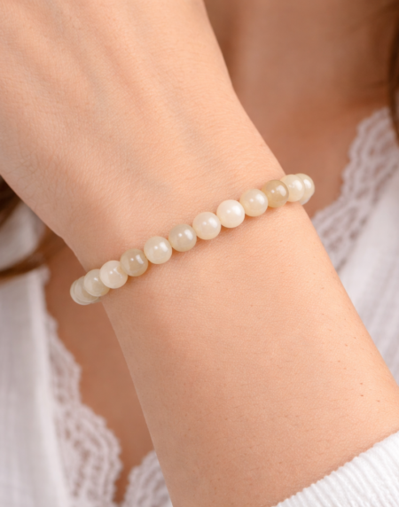 Ganesham Natural Moonstone Bracelet – Certified by JBN Gem Testing Lab | Original Moonstone Crystal Bead Bracelet for Healing & Astrology