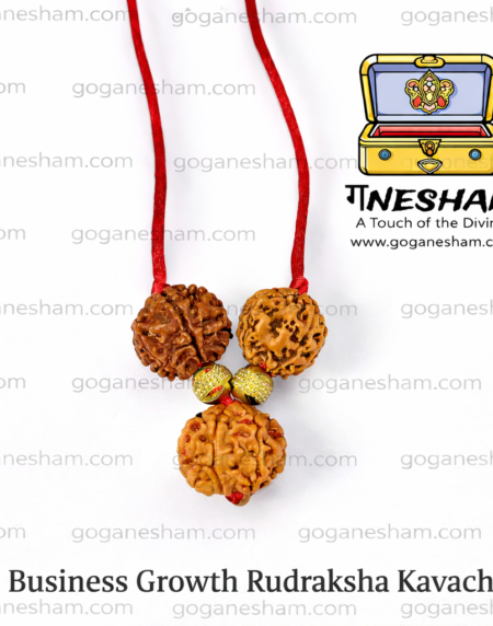 Ganesham Business Growth Rudraksha Kavach is a powerful spiritual pendant crafted with 4 Mukhi, 6 Mukhi and 7 Mukhi Original Rudraksha to support business success, financial stability, leadership power and protection.Each Rudraksha comes with JBN Gem Testing Lab Jaipur Certification and individual X-Ray authenticity report.
