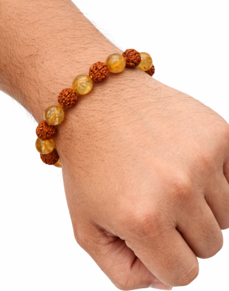 The Ganesham Certified Rudraksha Citrine Bracelet combines powerful 5 Mukhi Rudraksha beads with natural Citrine gemstone to promote prosperity, mental peace, confidence, and positive energy. Certified by JBN Gem Testing Lab Jaipur, this spiritual healing bracelet is ideal for attracting abundance, protection from negativity, and enhancing spiritual growth.