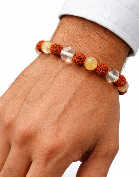 Experience powerful spiritual energy with the Ganesham Original Rudraksha + Citrine + Sphatik Bracelet, a unique combination designed to attract positivity, prosperity, mental clarity, and protection from negative energy. Made with natural Rudraksha beads, genuine Citrine gemstones, and pure Sphatik (Rock Crystal), this bracelet is ideal for daily wear for