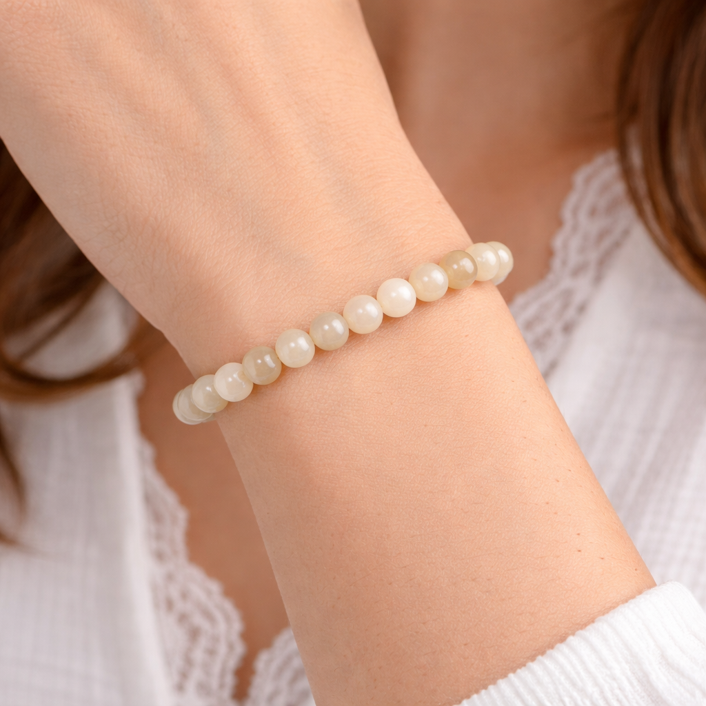 Moonstone has been revered for centuries as a sacred gemstone associated with the moon’s calming energies. It helps in reducing stress, enhancing intuition, and attracting harmony in relationships. Whether worn for astrological purposes, healing benefits, or fashion, this bracelet is a timeless accessory.