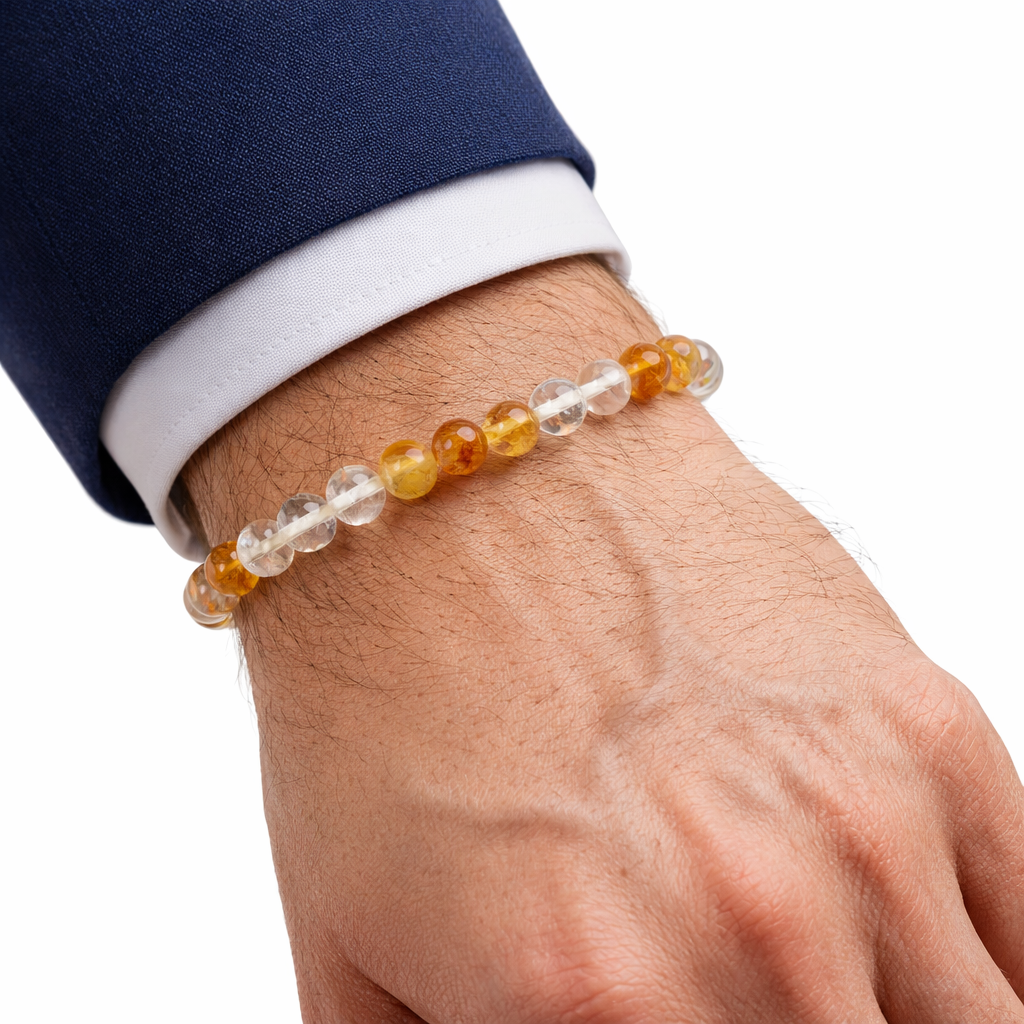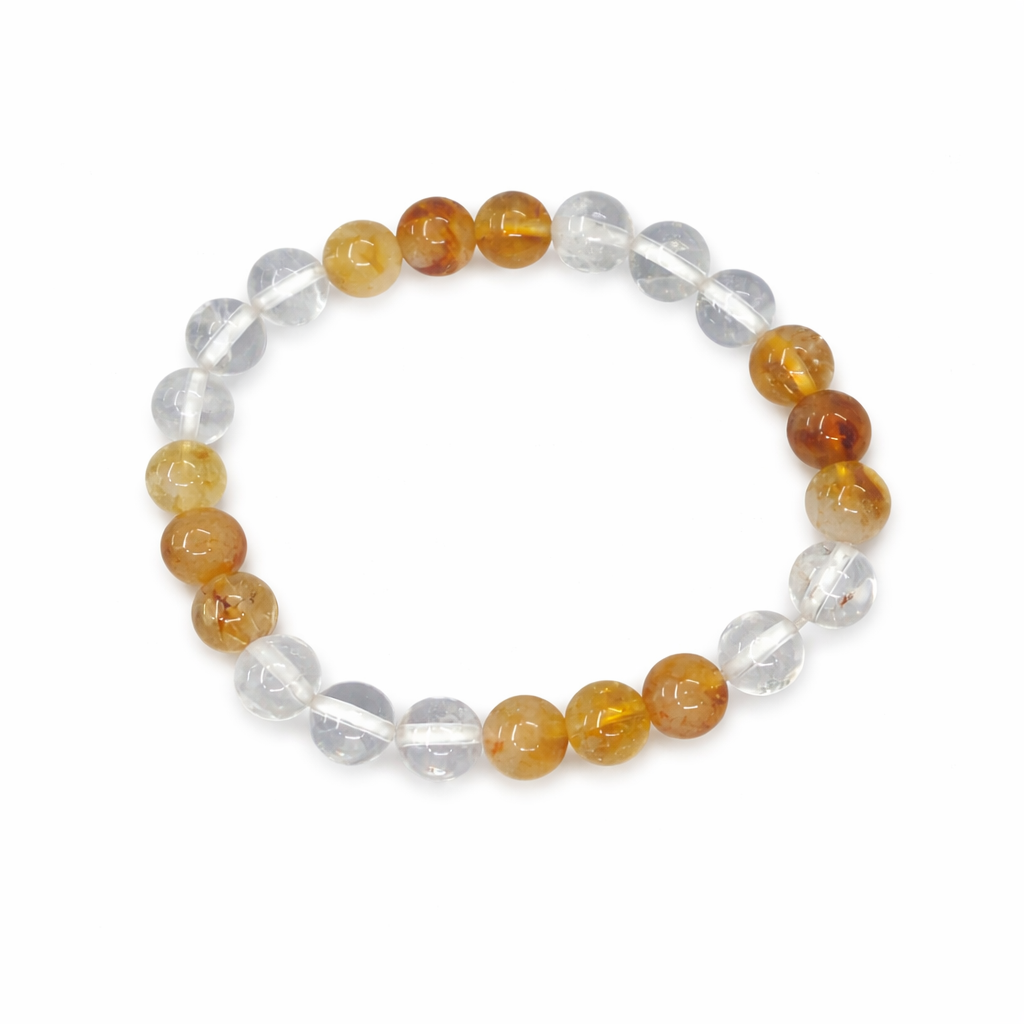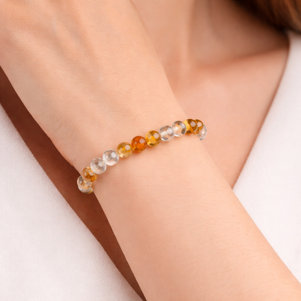 Experience the powerful combination of prosperity and clarity with the Ganesham Natural Citrine & Clear Quartz Healing Bracelet. Crafted from authentic natural gemstones, this bracelet merges the vibrant energy of Citrine with the amplifying power of Clear Quartz to support emotional balance, mental focus, and spiritual growth.