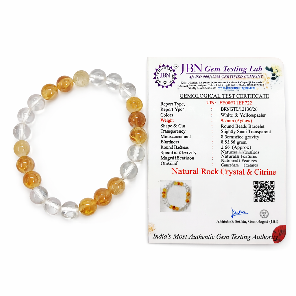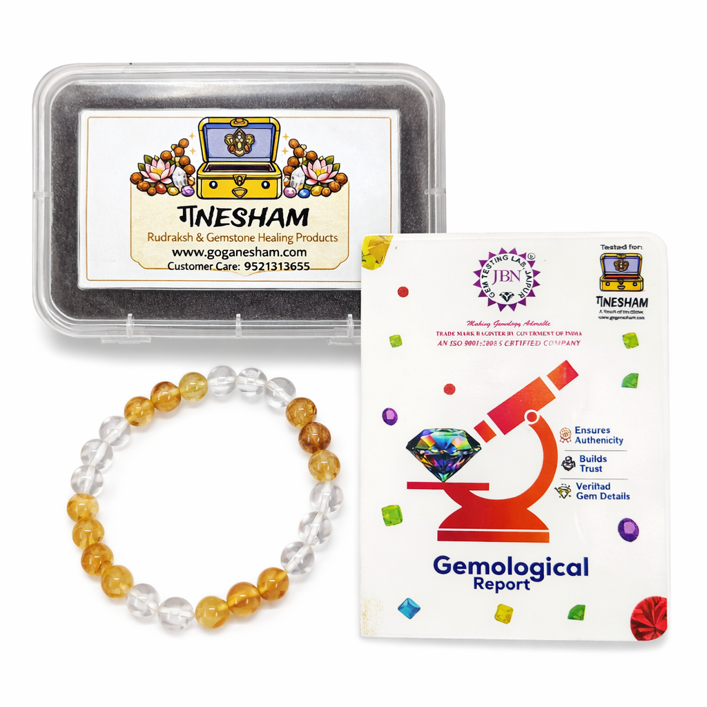 Ganesham Natural Citrine & Clear Quartz Healing Bracelet – Wealth, Positivity & Energy Balance Crystal Bracelet | JBN Gem Testing Lab Certified