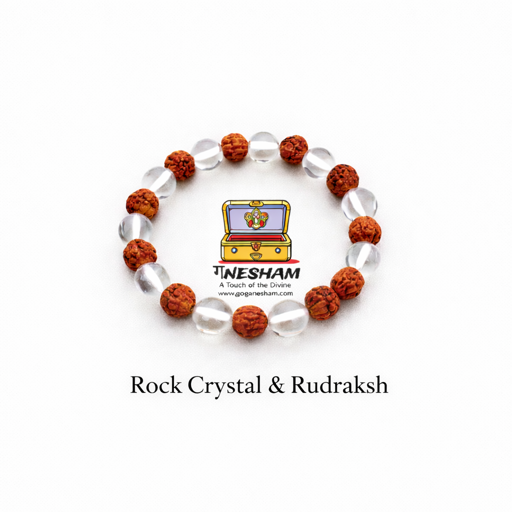 GANESHAM Divine Sphatik & 5 Mukhi Rudraksha Spiritual Protection Bracelet Certified by JBN Gem Testing Lab, Jaipur