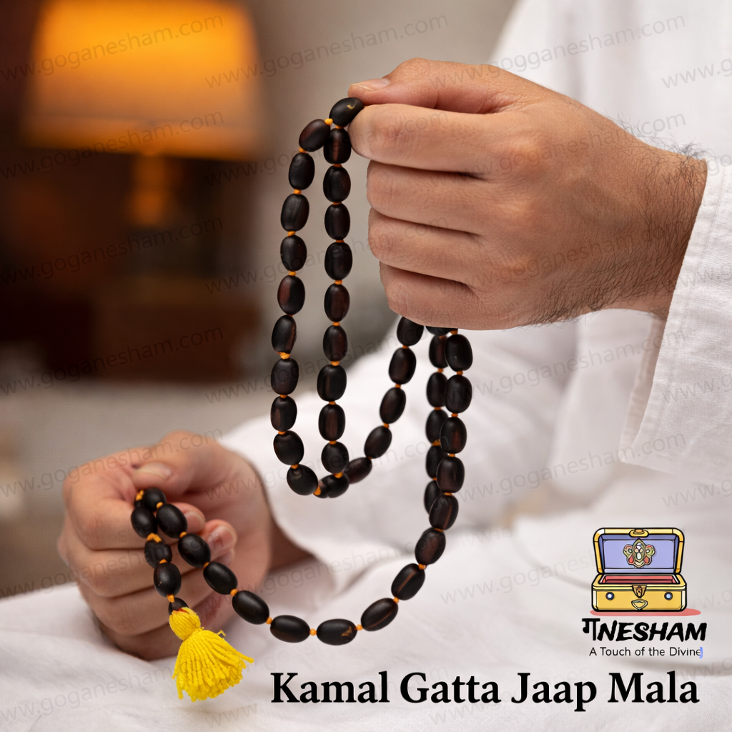 The GANESHAM Kamal Gatta 108+1 Jaap Mala is a powerful spiritual rosary crafted from authentic natural lotus seeds (Kamal Beej). Kamal Gatta is considered extremely auspicious in Hindu scriptures and is specially used in Mahalakshmi Sadhana, Kubera Mantra Jaap, and prosperity rituals.