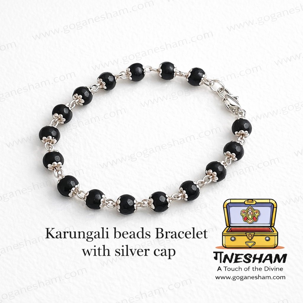 Buy Original Karungali Bracelet with Silver Finish Cap from Ganesham®. Certified by JBN Gem Testing Lab Jaipur. Powerful protection from evil eye, negative energy and Shani dosha.