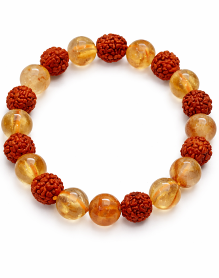 The Ganesham Certified Rudraksha Citrine Bracelet combines powerful 5 Mukhi Rudraksha beads with natural Citrine gemstone to promote prosperity, mental peace, confidence, and positive energy. Certified by JBN Gem Testing Lab Jaipur, this spiritual healing bracelet is ideal for attracting abundance, protection from negativity, and enhancing spiritual growth.