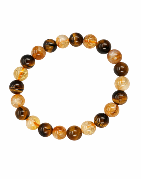 Natural Citrine & Tiger's Eye Combination Bracelet – Easy Wear Daily Energy Bracelet for Wealth, Confidence & Protection | Certified Natural Gemstone | Ganesham