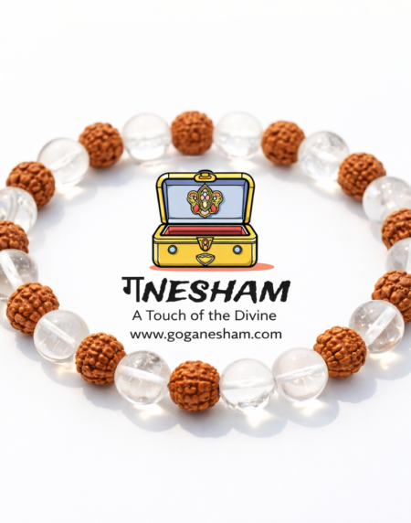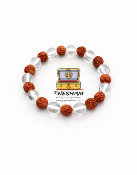 Ganesham® Natural 5 Mukhi Rudraksha & Rock Crystal (Sphatik) Healing Bracelet – Certified Unisex Energy Bracelet