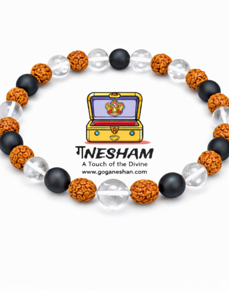 Experience the perfect balance of spiritual energy, protection, and clarity with Ganesham® 5 Mukhi Rudraksha, Karungali Wood & Rock Crystal Bracelet. This powerful unisex bracelet is designed to enhance positivity, mental peace, and aura cleansing while maintaining stylish everyday wear comfort.