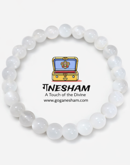 Experience the calming energy of the Moon with Ganesham Moonstone Bracelet. Handcrafted with 100% natural Moonstone, lab-certified by JBN Gem Testing Lab, Jaipur, this elegant unisex bracelet promotes emotional balance, inner peace, and positive vibrations.