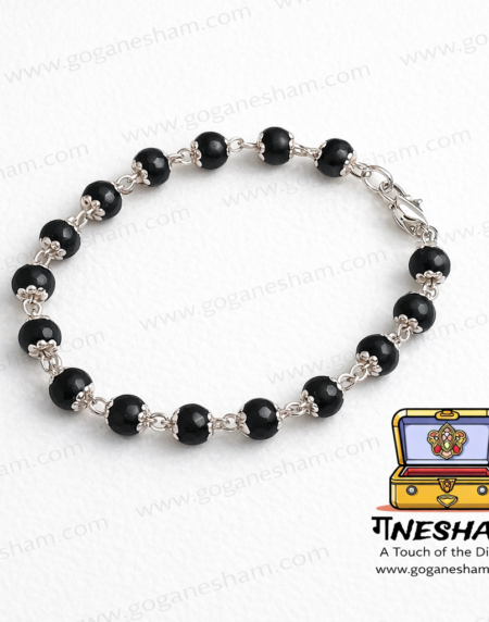 Ganesham Karungali Bracelet with Silver Finish Cap is a powerful spiritual bracelet known for protection from negative energy, evil eye and planetary dosha. Certified by JBN Gem Testing Lab Jaipur, this bracelet balances aura energy and enhances spiritual strength.