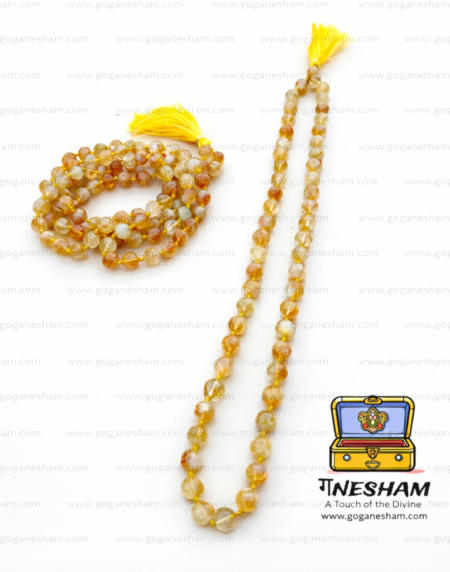 Ganesham Natural Citrine 54+1 Beads Japa Mala | Certified by JBN Gem Testing Lab Jaipur | Wealth & Manifestation Healing Necklace