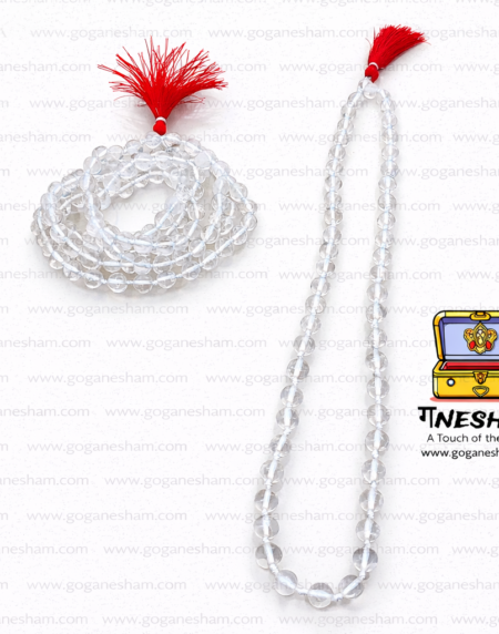 Experience purity, positivity, and spiritual energy with GANESHAM Natural Rock Crystal (Sphatik) Mala (54+1 Beads). Carefully handcrafted from high-grade natural Sphatik stones, this mala is ideal for daily mantra chanting (Jaap) and neck wearing. Each bead is lab-certified by JBN Gem Testing Lab Jaipur, ensuring authenticity and energetic purity.