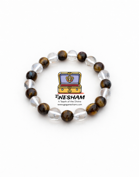 Ganesham Power Balance Bracelet – Sphatik & Tiger Eye Certified By JBN Gem Testing Lab, Jaipur