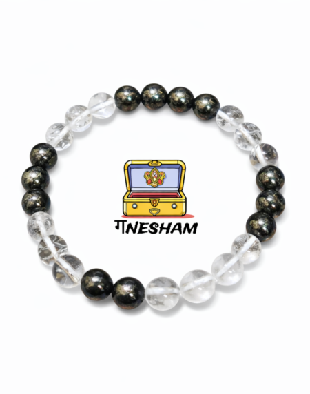 Balance your energy, boost confidence, and attract abundance with the powerful combination of Rock Crystal (Clear Quartz) and Pyrite. This unisex healing bracelet is carefully crafted to enhance positivity, mental clarity, and financial growth. Certified by JBN Gem Testing Lab, Jaipur for authenticity and purity.