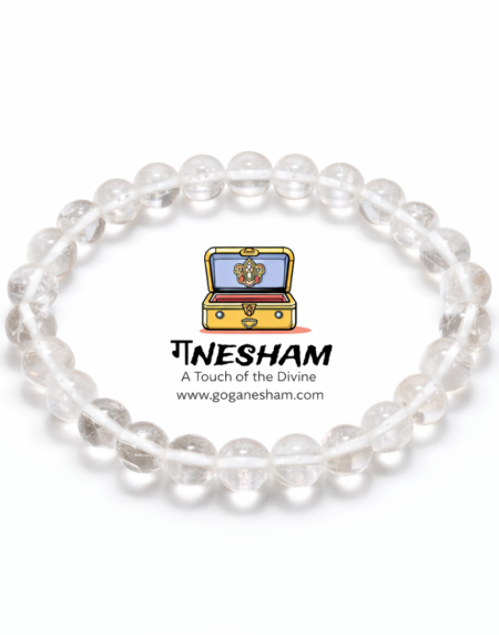 Elevate your spiritual energy with Ganesham Rock Crystal (Sphatik) Bracelet, crafted from 100% natural, lab-certified crystals. Known as the Master Healer Stone, Sphatik amplifies positivity, balances chakras, and enhances mental clarity. Perfect for daily wear, meditation, and vastu energy alignment.
