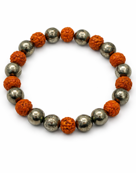 Ganesham 5 Mukhi Original Rudraksha & Natural Pyrite Bracelet is a powerful spiritual and energy-balancing bracelet designed for daily wear. Certified by JBN Gem Testing Lab Jaipur, this energized bracelet combines Rudraksha’s calming spiritual energy with Pyrite’s wealth-attracting properties, making it ideal for protection, success, and positivity.